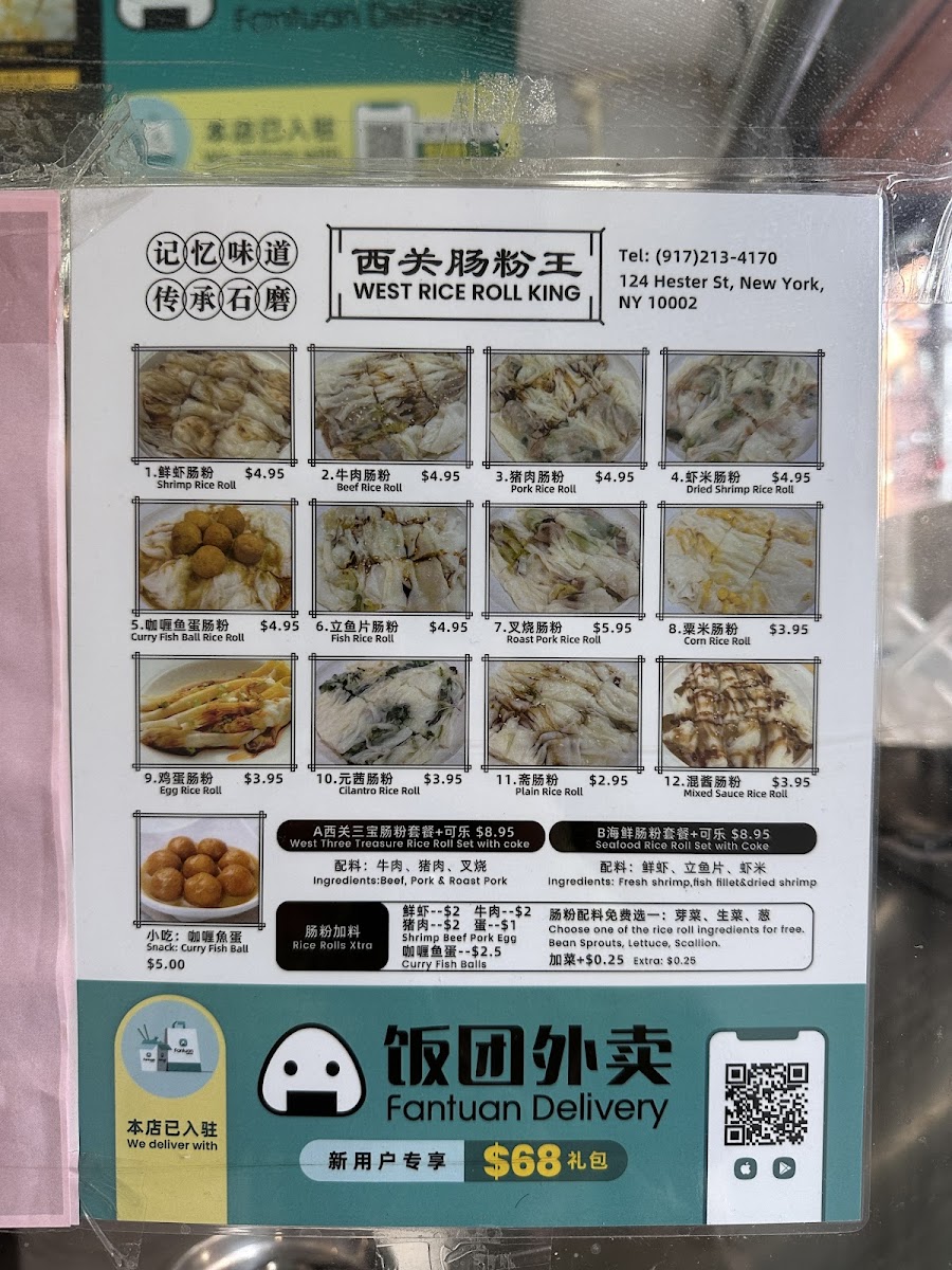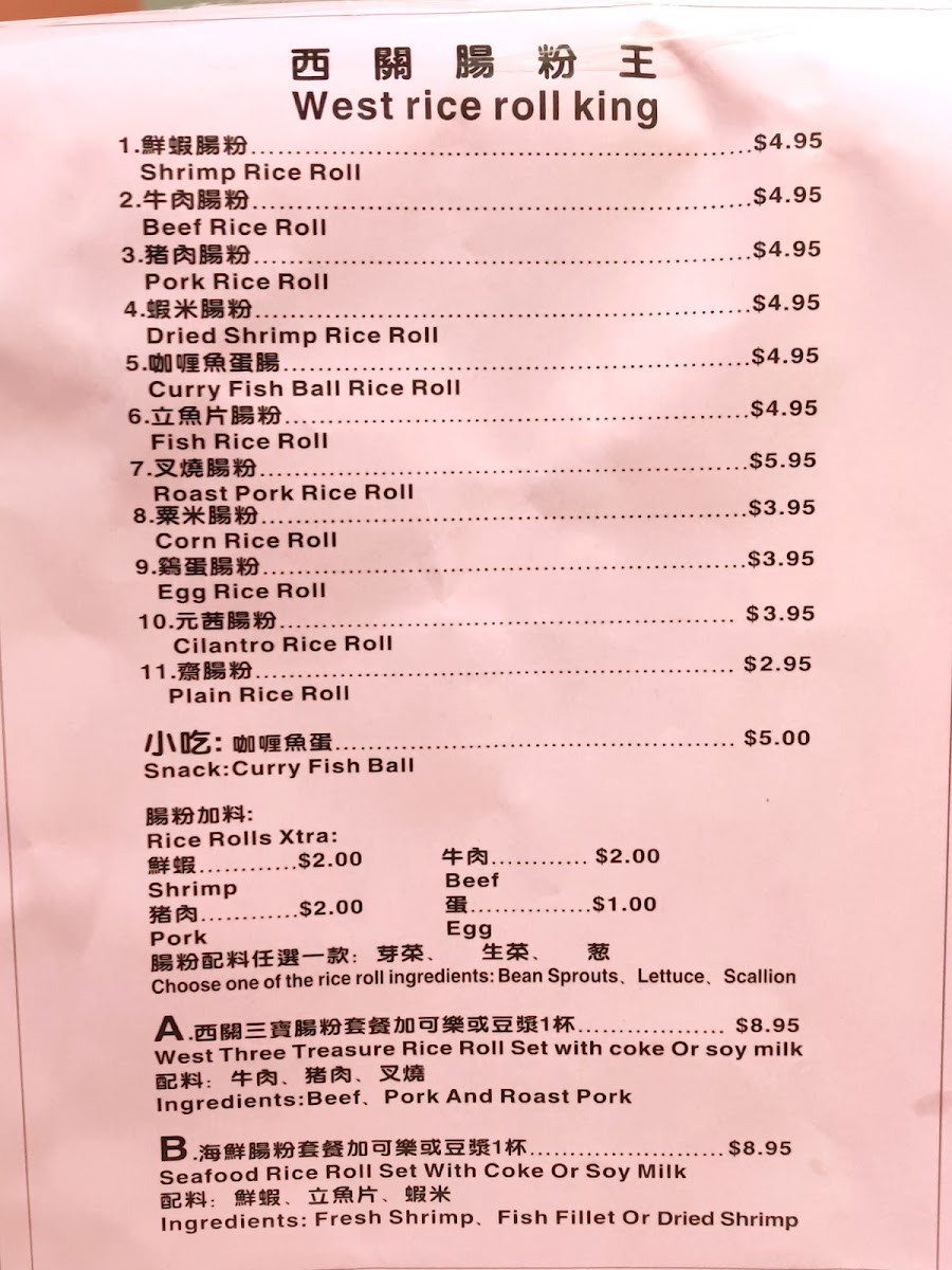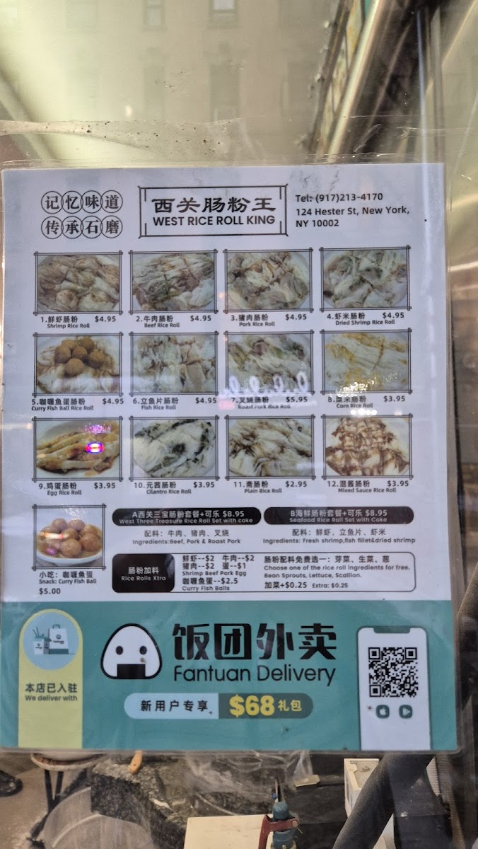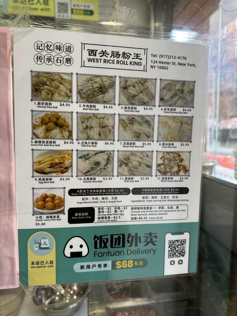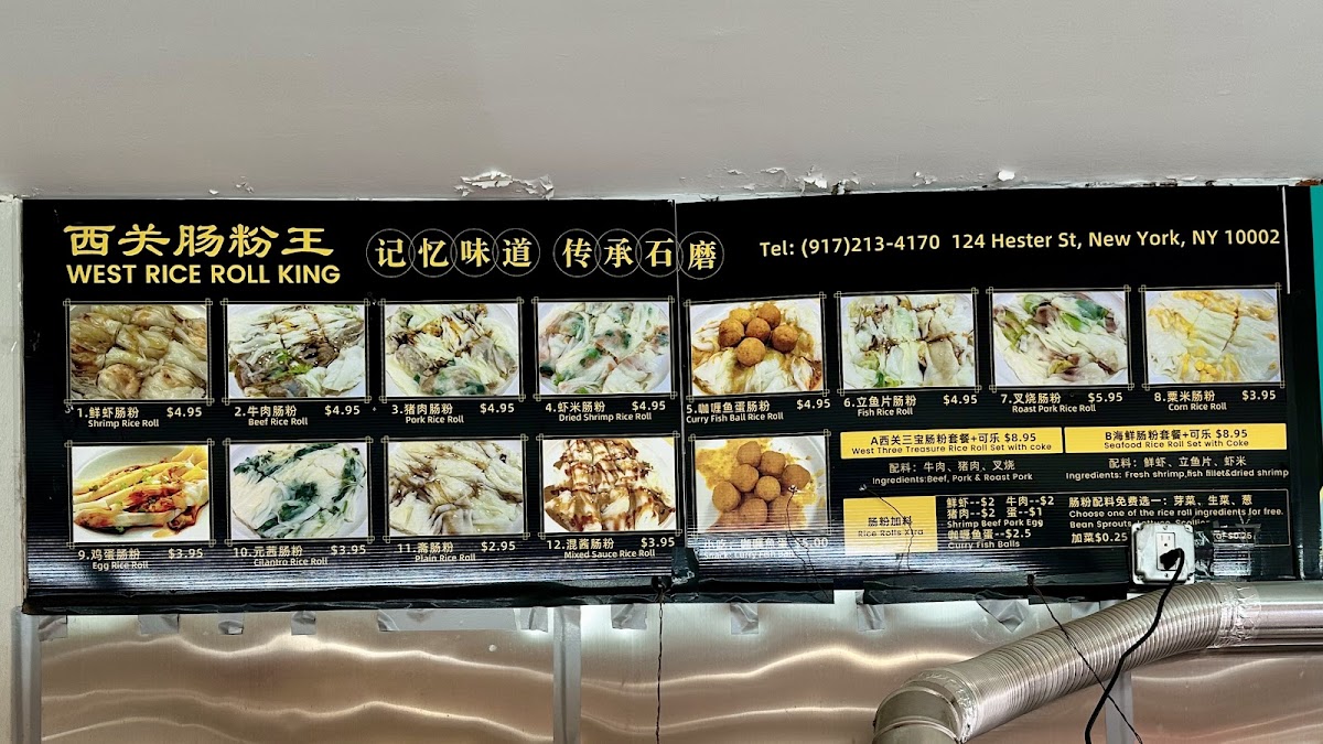 Tucked in the heart of Chinatown, the West Rice Roll King 西关肠粉王 Menu brings a comforting taste of Cantonese street food right to 124 Hester St, New York. The place specializes in silky rice rolls that glide on the plate, filled with everything from juicy shrimp and tender beef to delicate egg or char siu. Each roll is freshly steamed and lightly drizzled with a savory soy-based sauce that deepens the flavor with every bite. Alongside the rice rolls, you’ll find homestyle soups, congee, and simple side dishes that make the experience feel like a casual morning at a local Hong Kong market. The aroma of freshly steamed rice flour and the subtle sizzle of soy sauce in the air set a laid-back tone, perfect for anyone craving a quick yet authentic bite of southern Chinese comfort.